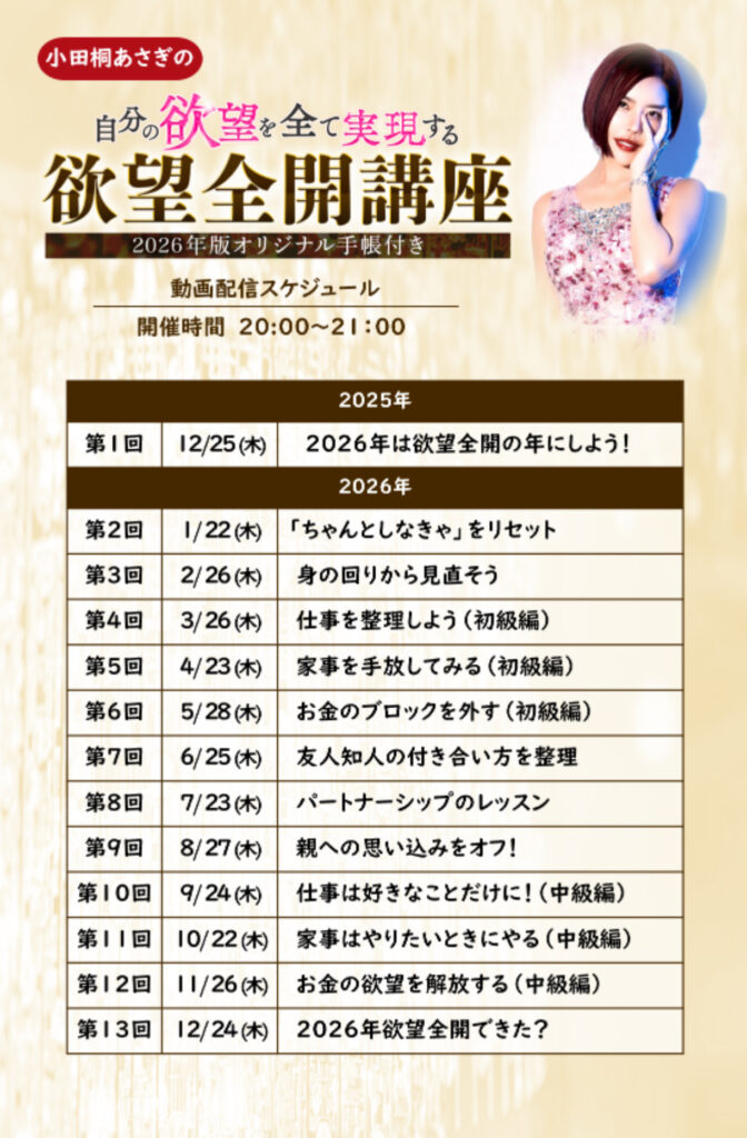 人生の重要テーマに沿ったレクチャーを月毎に記載。