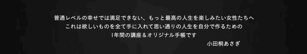 この欲望全開手帳は魅力覚醒講座の1番の肝になるチャプターを細分化して、1年かけてしっかると落とし込めるということを知り、欲望全開講座を受ける事にしました。